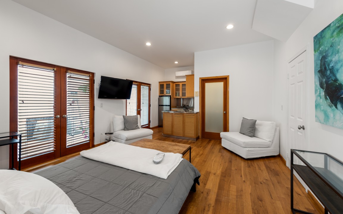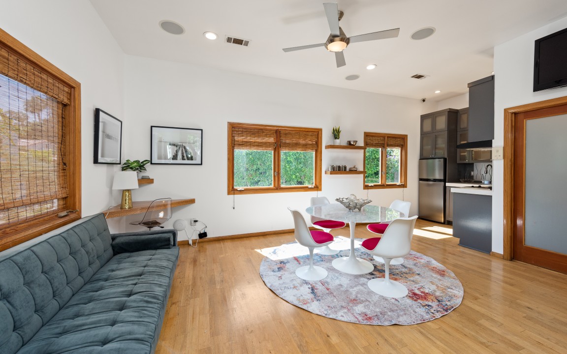 Towering windows draw the outdoors in, high ceilings add depth and scale, and glass pocket doors disappear into the walls opening to the private outdoor living area with pool and spa. Featuring innovative architecture, exquisite design, elegant finishes and fixtures, 637 Gardner is centrally located in the Melrose District and just minutes from acclaimed shopping, dining, and nightlife.This is an incomparable property, a bold, new-construction contemporary created by a renowned Beverly Hills Design firm. The sleek custom Miton Italian kitchen is appointed w/ Miele appliances, large center island & built-in breakfast area. A very generous master retreat is complete with fireplace, large private balcony, massive closet, secondary closet, stunning spa-like bath with dual floating sinks, deep soaking tub & separate shower. Private open air 2nd-story patio, ground level covered patio area overlooking a zero edge spa, decorative pool, flat grassy yard and more.