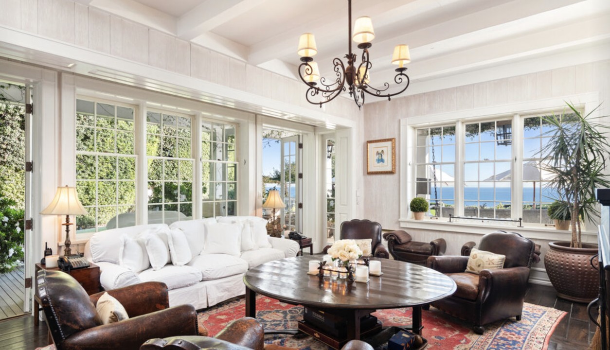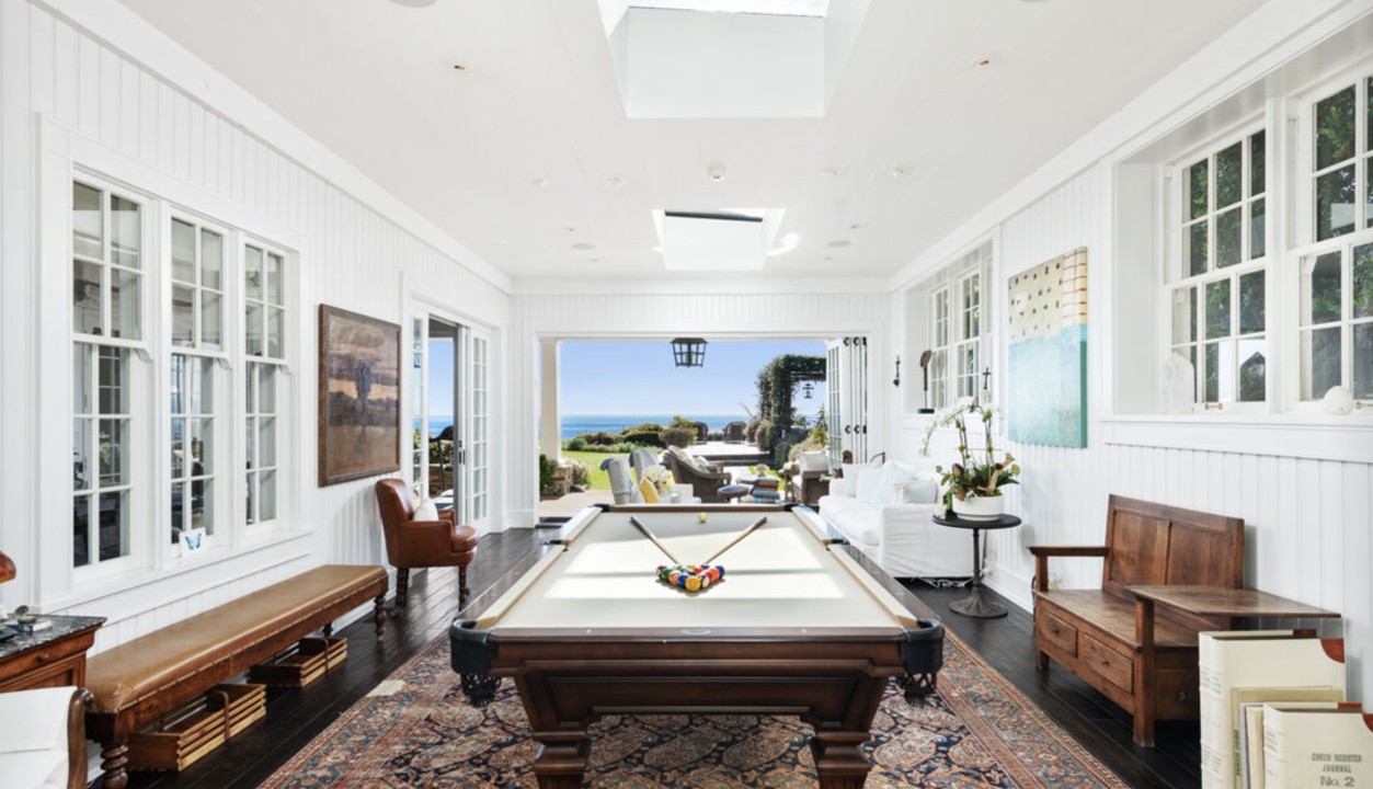 This 3-acre compound seamlessly blends traditional elegance with modern luxury. Boasting panoramic views from Point Dume to the Queen’s Necklace, the property offers privacy and grandeur. Inside, high ceilings, skylights, and large windows illuminate exquisite details. The open floor plan maximizes the stunning views, while a heated poolside portico invites outdoor living against a Pacific backdrop. This Malibu retreat is a haven of refined living, capturing the essence of coastal luxury.