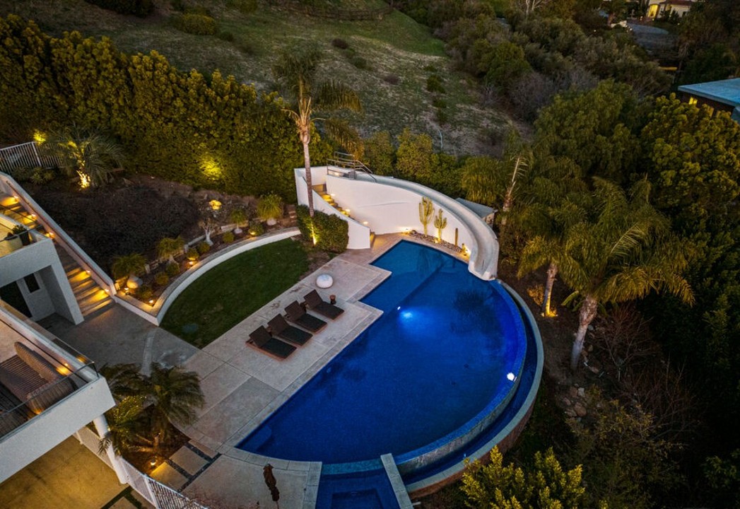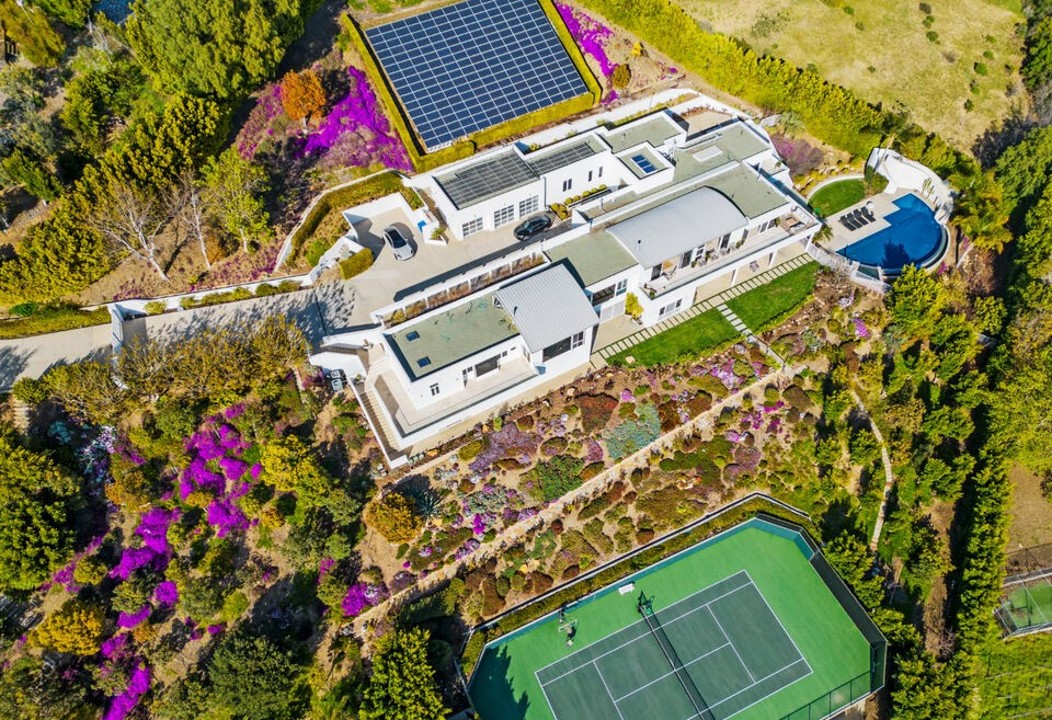 Set on 2.5 acres of lush, gated grounds, this exceptional Malibu estate offers 6 bedrooms and 10 baths with the ultimate in privacy and resort-style living. Highlights include a sparkling pool with slide, spa, full-size tennis court, expansive lawns, multiple outdoor lounges, and stunning panoramic views.
