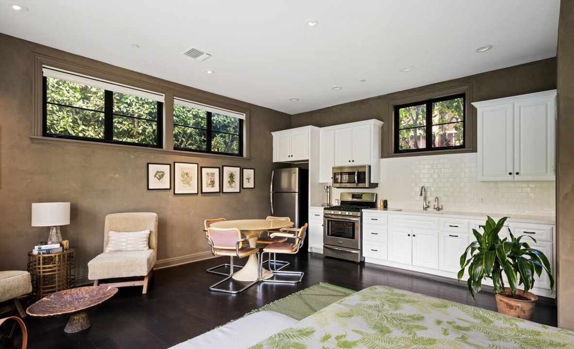 Towering windows draw the outdoors in, high ceilings add depth and scale, and glass pocket doors disappear into the walls opening to the private outdoor living area with pool and spa. Featuring innovative architecture, exquisite design, elegant finishes and fixtures, 637 Gardner is centrally located in the Melrose District and just minutes from acclaimed shopping, dining, and nightlife.This is an incomparable property, a bold, new-construction contemporary created by a renowned Beverly Hills Design firm. The sleek custom Miton Italian kitchen is appointed w/ Miele appliances, large center island & built-in breakfast area. A very generous master retreat is complete with fireplace, large private balcony, massive closet, secondary closet, stunning spa-like bath with dual floating sinks, deep soaking tub & separate shower. Private open air 2nd-story patio, ground level covered patio area overlooking a zero edge spa, decorative pool, flat grassy yard and more.